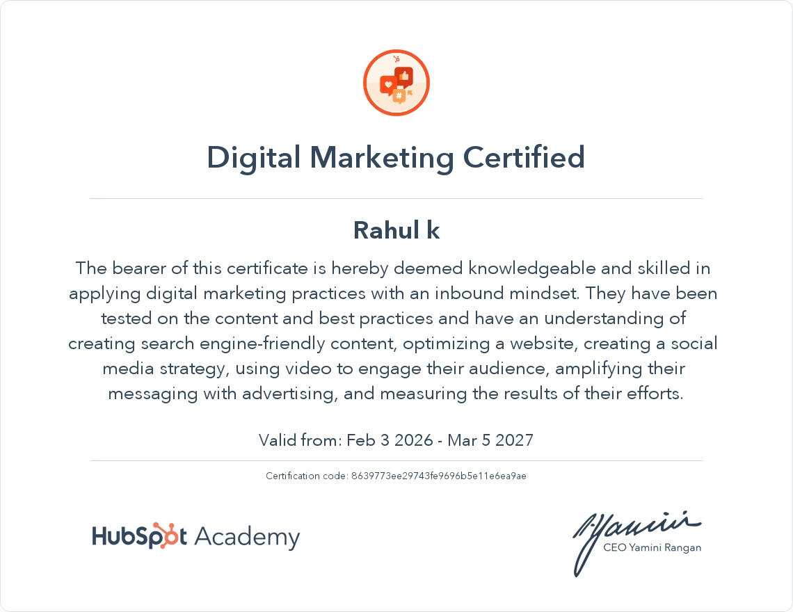 “Clear communication, realistic expectations, and consistent effort. Rahul approaches digital marketing with a problem-solving mindset.”